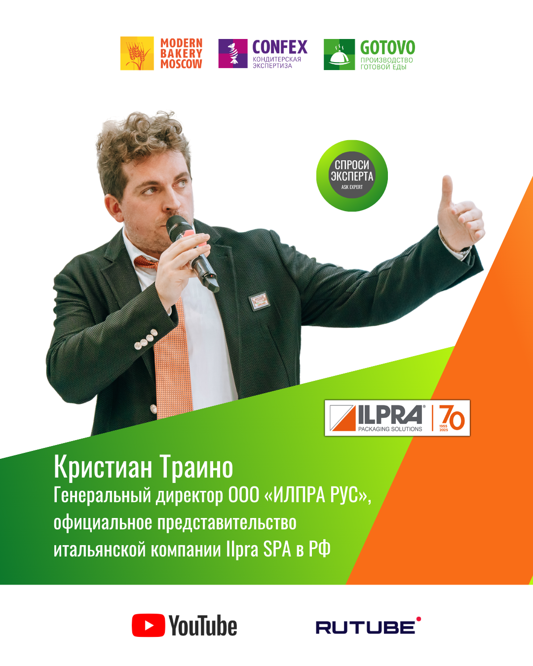 🥘 В студии GOTOVO – Кристиан Траино, генеральный директор ООО «ИЛПРА РУС». Компания - экспонент выставки Gotovo 2025-2026, официальное представительство итальянской компании Ilpra SPA в РФ, которая является одной из ведущих компаний в мире в сфере производства упаковочного оборудования для пищевой промышленности, а именно трейсилеров, термоформеров и фасовочных машин.