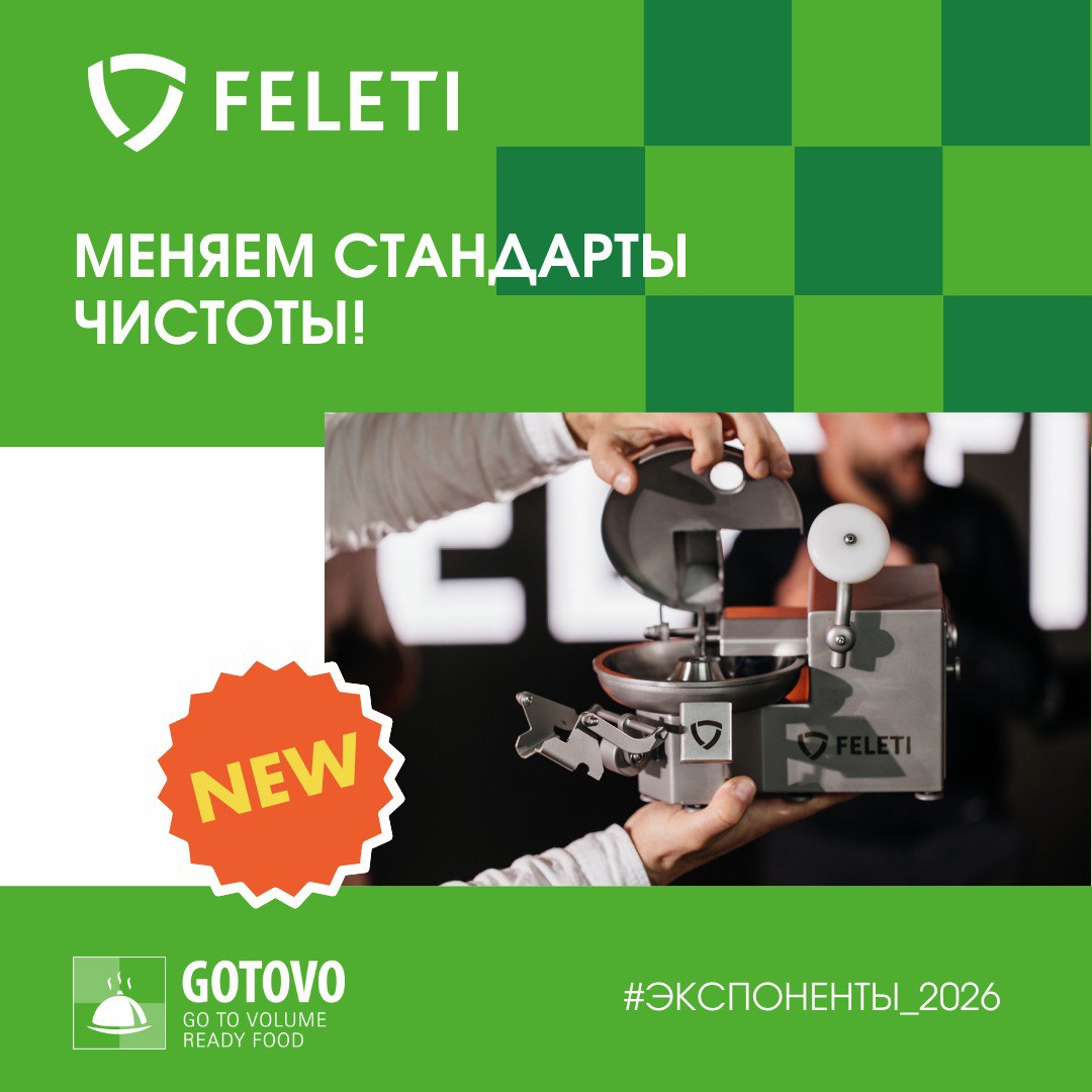 Создана для интенсивной работы на производстве В направления FELETI входят решения мясопереработки, убоя и первичной переработки скота, мойки тары и санитарии производства. До встречи на Gotovo 2026!